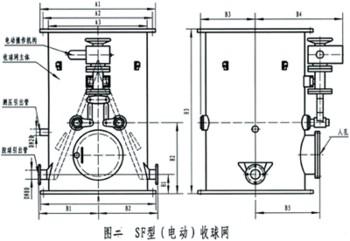 分匯器是一個三通(管)閥。通過其中導向板的切換可使膠球進入需要清洗的一側凝汽器中。也可作為收球網(wǎng)膠球引出管的匯合和接球管的分流三通管使用。