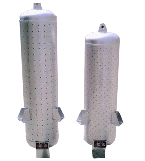PX型排氣消聲器,PX指小孔消聲器(小孔型),適用于高溫高壓,無(wú)消音器棉填料,消音器四周均為是小孔,氣體從 底部接管進(jìn)入,從四周排出。